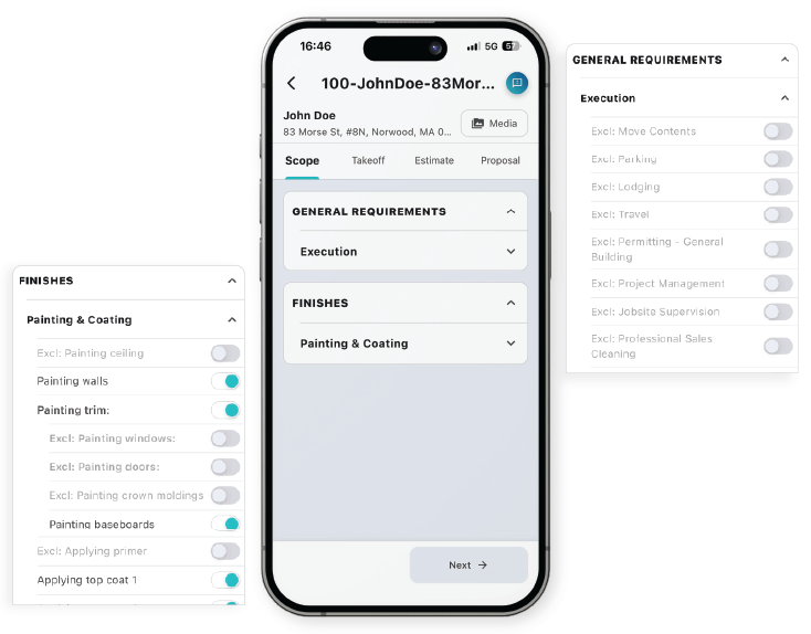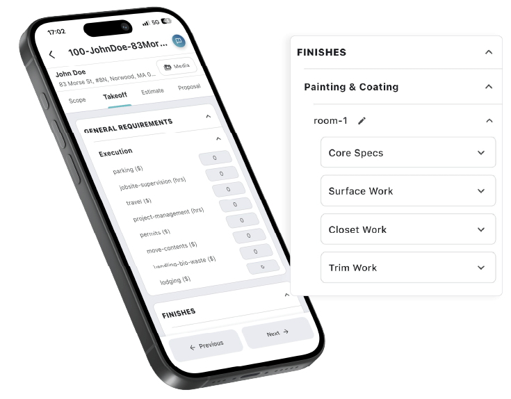Tally turns your site walk’s voice or video into our patented Tally's Step Process (scope - takeoff - estimate - proposal), so you can send proposals to clients before leaving the jobsite.