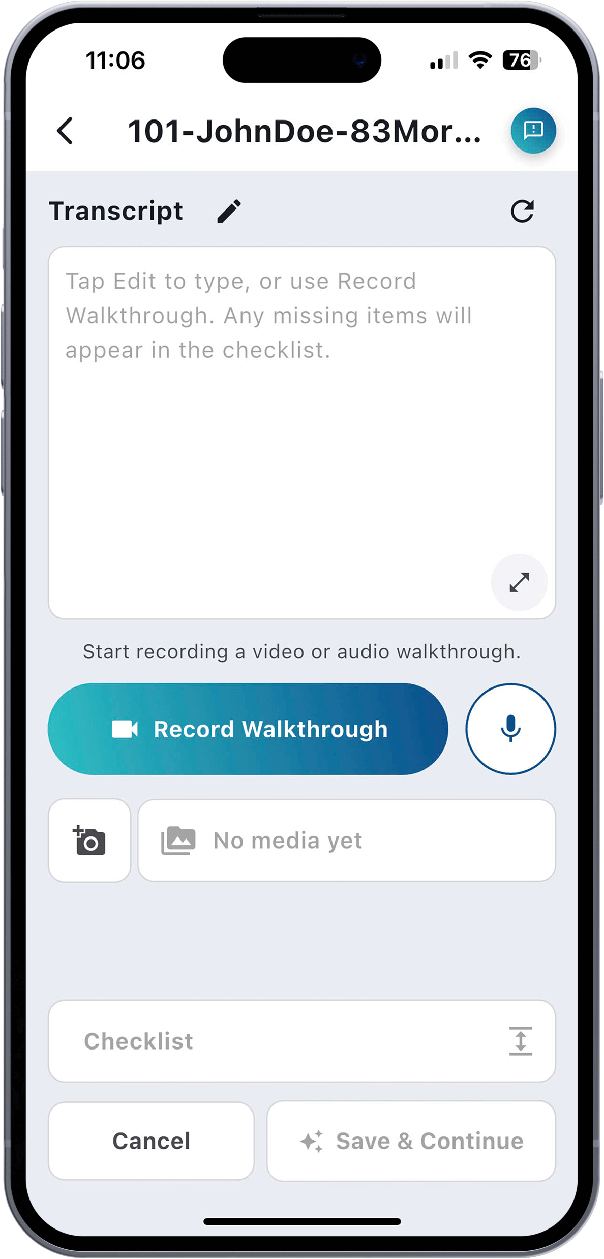 Your only job is recording the walkthrough — Tally takes care of the rest.